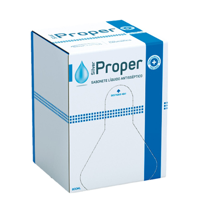 SILVER PROPER E SILVER PROPER ESPUMA – SABONETE LÍQUIDO ANTISSÉPTICO E SABONETE LÍQUIDO ANTISSÉPTICO ESPUMA   Sabonetes líquidos desenvolvidos para a higienização e limpeza profunda das mãos com ação antisséptica. Possuem atividade antimicrobiana contra amplo espectro de microorganismos (Salmonella choleraesuis; Staphylococcus aureus; Pseudomonas aeruginosa e Escherichia Coli). Protegem e hidratam a pele, possuem emolientes que evitam o ressecamento e irritações, mesmo com o seu uso contínuo. Produtos isentos de perfume, testados e aprovados dermatologicamente. Ideais para as áreas de manipulação de alimentos em geral, hospitais (áreas não críticas), laboratórios, consultórios, clínicas e demais instituições onde a assepsia das mãos é de fundamental importância para manter boas condições de higiene e saúde.